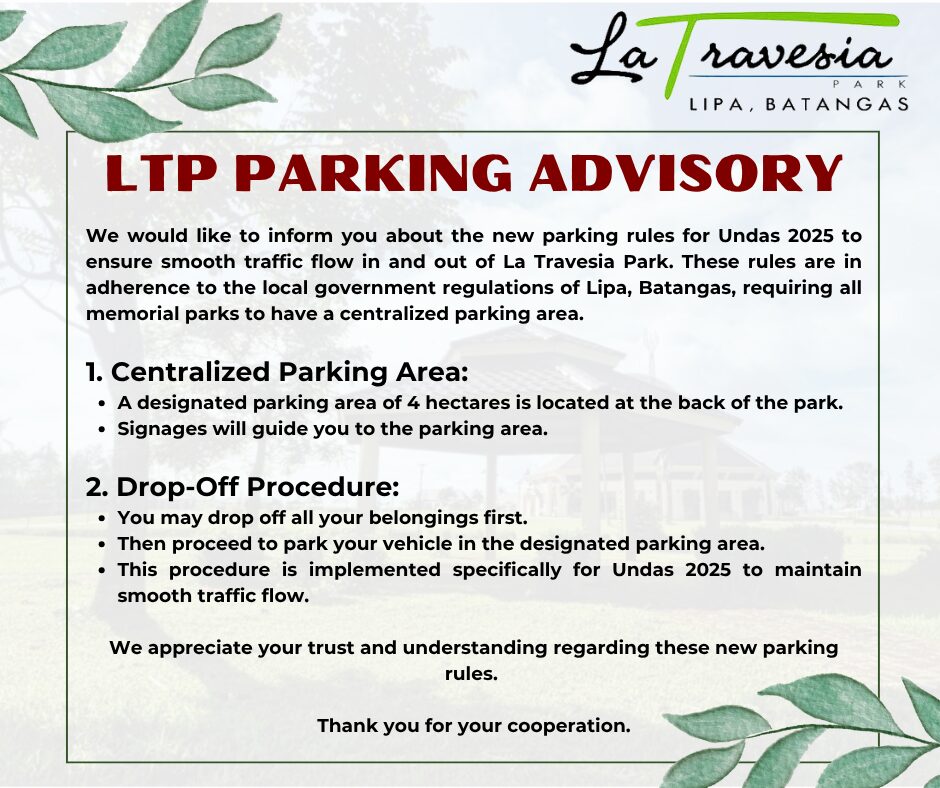 LA TRAVESIA PARK 2025 PARKING ADVISORY